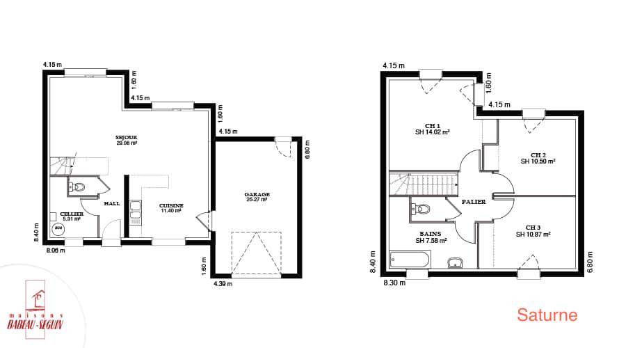 Sur ce terrain, nous vous proposons cette maison neuve : la Saturne de 117 m². Élégante maison contemporaine, la Saturne est disponible en trois versions de 97 m², 107 m² et 117 m², toutes avec garage accolé.