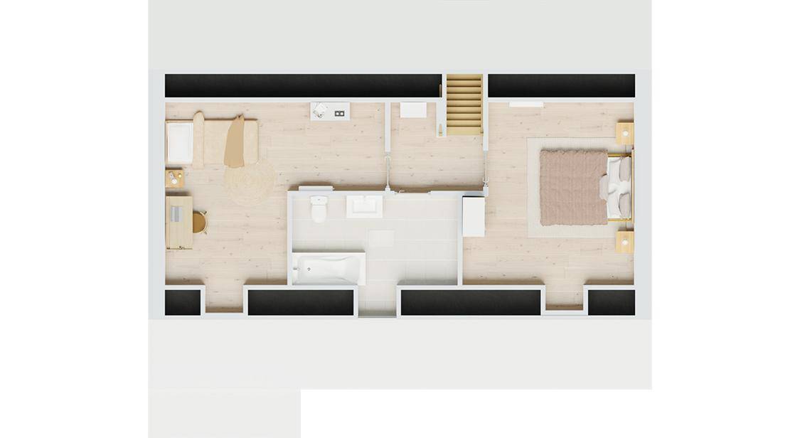 La Focus EVO se distingue par son concept évolutif, alliant une maison neuve prête à vivre et une maison prête à finir. Livrée avec 73 m² habitables, elle est conçue pour évoluer avec vos besoins futurs. Grâce à ses combles aménageables, vous pouvez facilement augmenter votre surface habitable à 110 m², ajoutant ainsi deux chambres supplémentaires et une salle de bain, pour un total de 4 chambres et 2 salles de bains.