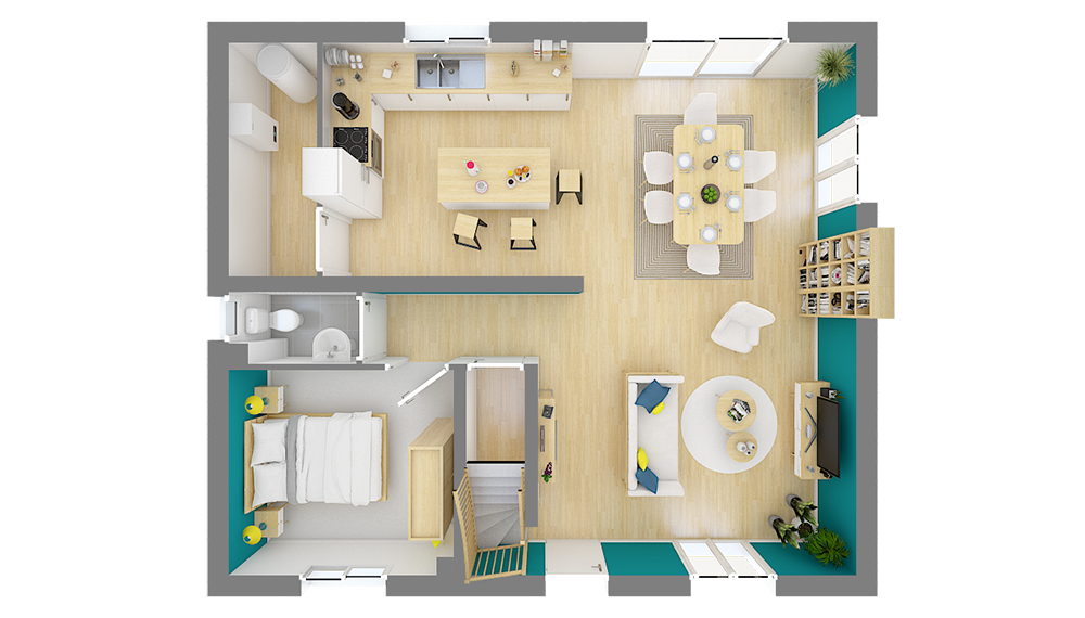 Sobriété et efficacité sont les maîtres mots de ce modèle, idéal pour les terrains étroits et les budgets serrés. Le plan de l'Epervière est entièrement personnalisable, vous permettant de créer une maison unique qui répond parfaitement à vos besoins et à vos envies.