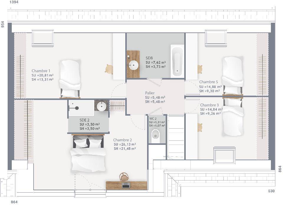 Cette maison comporte 2 niveaux. Elle est neuve.