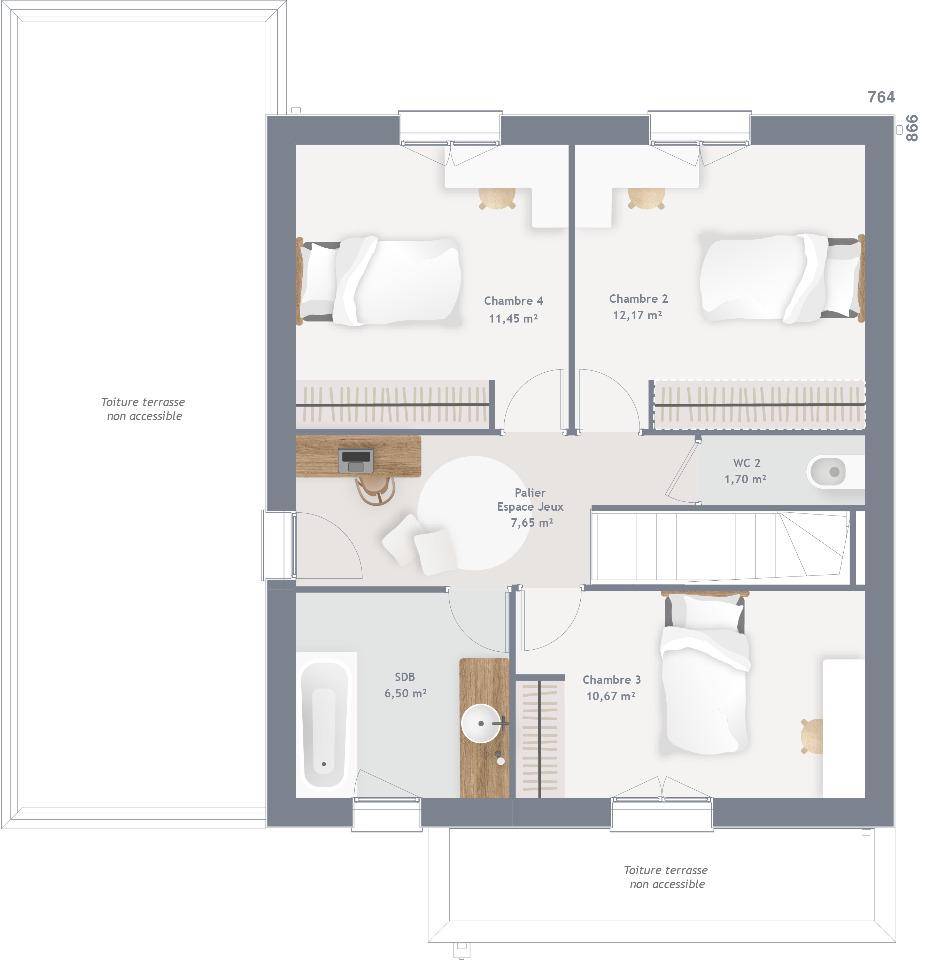 Il s'agit d'une maison de 2 niveaux. Elle est neuve.