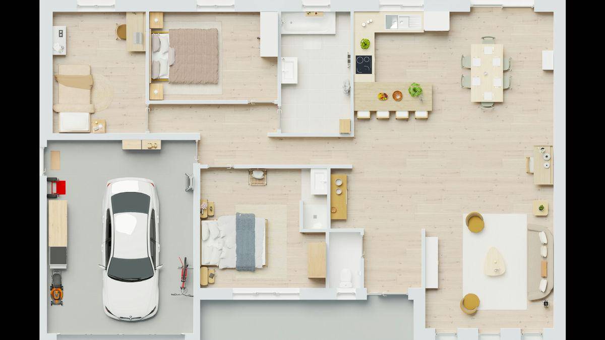 Ce modèle se déploie sur une surface généreuse de 115 m², intelligemment répartie en 4 pièces, dont 3 chambres confortables. La suite parentale, un véritable havre de paix, promet intimité et tranquillité. Le garage intégré offre non seulement un espace de stationnement sécurisé mais aussi un espace de rangement supplémentaire ou la possibilité d'aménager un atelier pour les bricoleurs.