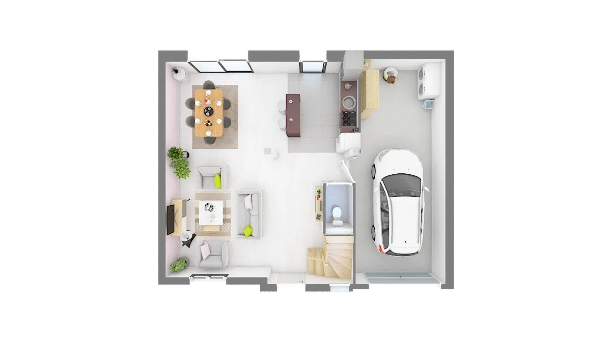 TERRAIN ET MAISONSur ce terrain, nous vous proposons de découvrir l’élégance moderne et l’efficacité énergétique du modèle de maison Alaska par Maisons Vesta. Cette demeure contemporaine offre un confort optimal avec une entrée accueillante menant à un vaste séjour de 30 m², baigné de lumière naturelle grâce à ses grandes ouvertures vitrées, avec une cuisine attenante de 7,5 m², parfaitement aménageable.Le rez-de-chaussée inclut également des toilettes pratiques près de l’entrée et un grand garage intégré de 20,29 m², offrant à la fois un abri sécurisé pour votre véhicule et un espace de rangement supplémentaire.À l’étage, la maison Alaska continue de séduire avec trois chambres lumineuses et un bureau. La suite parentale de 15,90 m² offre un espace généreux pour un lit king-size et du mobilier complémentaire. Les deux autres chambres, respectivement de 11,64 m² et 11,06 m², sont idéales pour des enfants ou des invités. Un bureau de 8,25 m², parfait pour le télétravail ou les études, ainsi qu’une salle de bains moderne de 6,58 m² et un second WC complètent cet étage.Optez pour le modèle Alaska de Maisons Vesta, une maison qui allie style, fonctionnalité et respect de l’environnement.