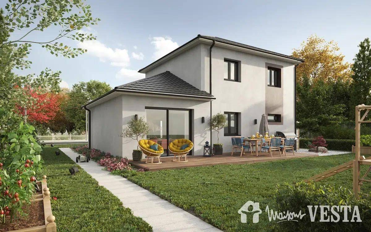 TERRAIN ET MAISONSur ce terrain, nous vous proposons cette maison neuve : la My First 80, conçue par Maisons Vesta. Si vous cherchez à construire un nid douillet pour votre petite famille sans vous ruiner, notre My First 80 est la meilleure des options. Icône de notre gamme premier prix, c’est une maison familiale de premier choix pour un vraiment tout petit prix. De conception bien équilibrée, cette habitation de plain-pied très stylée et contemporaine va vous permettre de réaliser votre rêve de maison même si vous avez un budget serré.La My First 80, une maison équilibrée pour un maxi confortLa surface habitable de ce pavillon de style est de 80 m². Vous adorerez les caractéristiques harmonieuses de cette très belle demeure si fonctionnelle, avec son vaste séjour-cuisine où il fait vraiment bon vivre et son espace nuit comprenant trois jolies chambres.Une habitation à la configuration bien penséePour un prix incroyablement bas, vous avez une maison d’une grande élégance, conçue avec des performances énergétiques et écologiques des plus performantes. Est-il utile de préciser que, comme c’est le cas pour l’ensemble de nos maisons, notre gamme My First bénéficie des dernières innovations technologiques et de toute l’expertise de Maisons Vesta ? Cette maison neuve est basse consommation et conforme à la RE2020, garantissant ainsi des économies d’énergie et un confort optimal tout au long de l’année.Un petit prix mais des petits plus qui font toute la différenceLes petits plus qui vous feront inévitablement craquer sur ce modèle : sa salle de bains spacieuse et un cellier derrière la cuisine ! C’est une maison pratique dans laquelle votre famille se sentira à l’aise tout de suite !Ne manquez pas cette opportunité unique de devenir propriétaire d’une maison neuve, fonctionnelle et économique avec la My First 80 de Maisons Vesta. Contactez-nous dès aujourd’hui pour plus d’informations et pour planifier une visite du terrain.