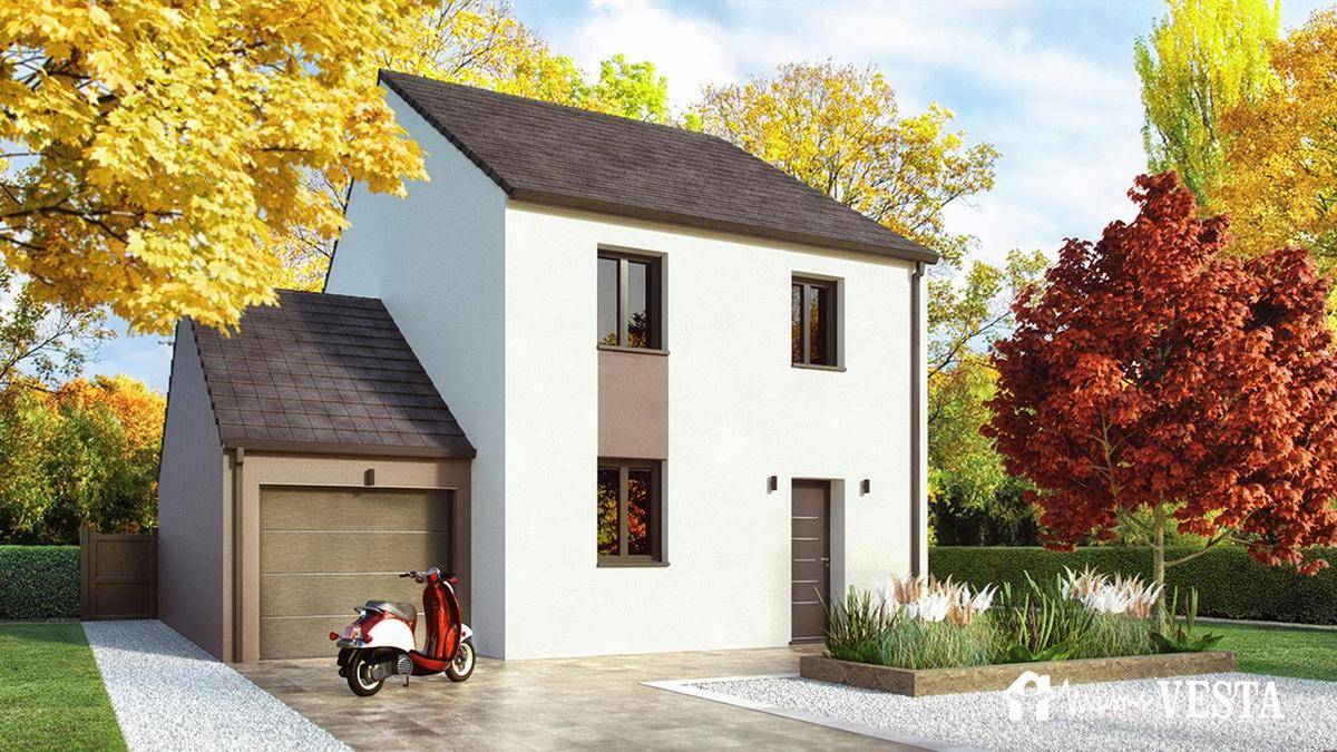TERRAIN ET MAISONSur ce terrain, nous vous proposons cette maison neuve : la My First 75, un modèle idéal pour les familles à la recherche d’un logement à petit prix. Conçue par Maisons Vesta, cette maison de 75 m² offre 4 pièces, dont 3 chambres, et se distingue par ses excellentes performances énergétiques conformes à la norme RE2020.La My First 75 est la championne toutes catégories de notre gamme low cost ! C’est en effet la maison la moins chère, tout simplement ! Quand simplicité et qualité riment avec meilleur prix, cela donne une jolie habitation traditionnelle de plain-pied avec garage intégré, très sympa et affichant d’excellentes performances en matière d’économie d’énergie (RE2020), ce qui est indispensable à l’heure actuelle. Même avec un budget serré, votre projet se réalisera avec Maisons Vesta !Ce joli petit pavillon dispose d’un garage de 15m². Quant à sa surface habitable, elle est de 75m². Un grand séjour-cuisine traversant donne une agréable sensation d’espace. Trois chambres à coucher de dimension raisonnable accueilleront votre famille ! Le design sobre et moderne tout à la fois en fait un modèle très apprécié de nos clients.Fonctionnelle, elle a une petite surface, mais des espaces si bien répartis qu’on est loin de se sentir à l’étroit. La My First 75 a vraiment tous les arguments pour séduire le plus exigeant de nos clients ! Visitez-la en 3D sur notre site !Pour un prix défiant toute concurrence, vous bénéficiez de nos meilleures technologies et d’un service sans failles ! Soyez-en assuré, son tout petit prix ne vous privera pas d’une maison bien isolée, aux finitions soignées, dans laquelle vous et votre famille vous sentirez vraiment chez vous !Cette My First est prête à construire… et ce au meilleur prix. Ne manquez pas cette opportunité unique de devenir propriétaire d’une maison neuve, basse consommation et conforme à la RE2020, avec Maisons Vesta.