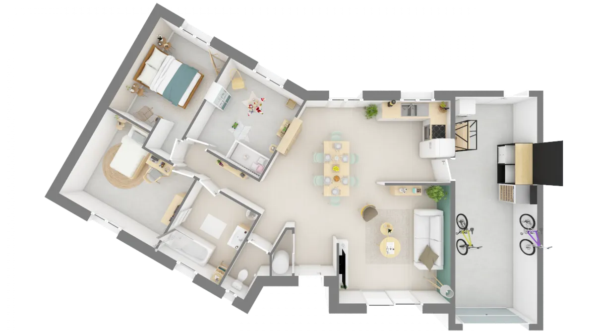 Le modèle Etoile comporte également un garage intégré de presque 25 m², idéal pour abriter votre véhicule et offrir un espace de rangement supplémentaire.