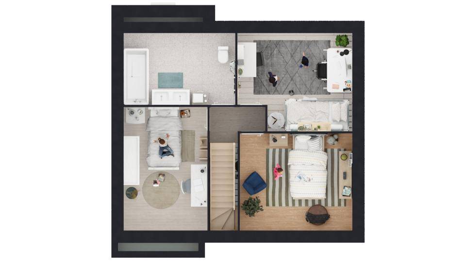 Il s'agit d'une maison de 2 niveaux. Elle propose trois chambres, une cuisine et une salle de bains. La maison est neuve.