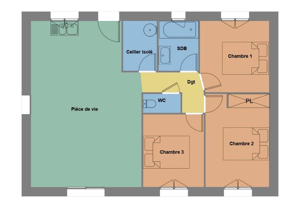 À 14 km de la côte atlantique et à 11 km de Lorient, Maisons de l'Avenir Lorient vous propose cette maison de 4 pièces de plain-pied de 70 m² et de 304 m² de terrain en vente, idéalement située dans Pont-Scorff (56620).