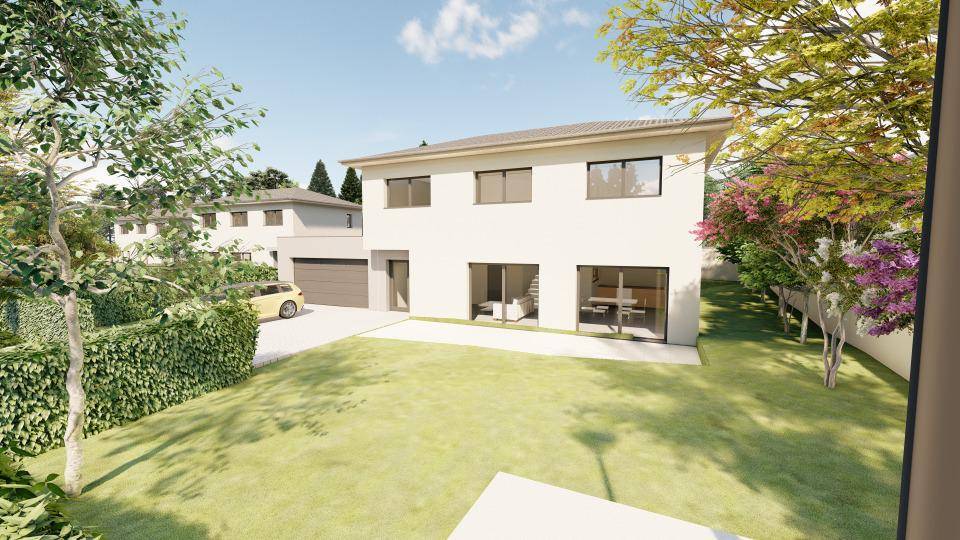 Emplacement privilégié - À Charly-Oradour (57640), maison neuve en vente de 6 pièces, 2 niveaux, 143 m² et 533 m² de terrain. Elle inclut quatre chambres, une cuisine et deux salles de bains. Vue sur un espace vert.