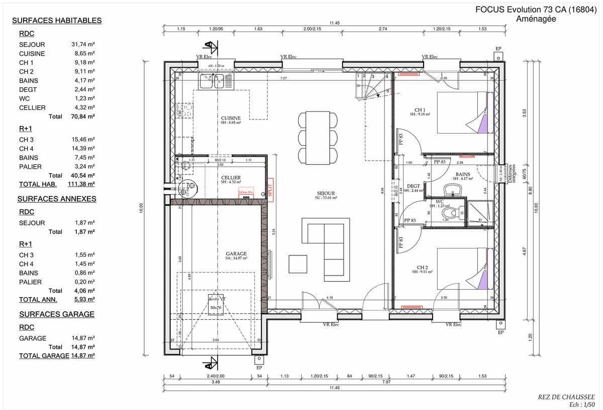 TERRAIN ET MAISONMaison neuve évolutive de 73 m² habitables, idéale pour les familles en quête d’un logement évolutif. Livrée avec 2 chambres, une grande pièce de vie lumineuse, et un garage. Combles aménageables pour passer à 110 m² (4 chambres, 2 salles de bains). Écologique et conforme à la RE2020. Une maison prête à grandir avec vous !
