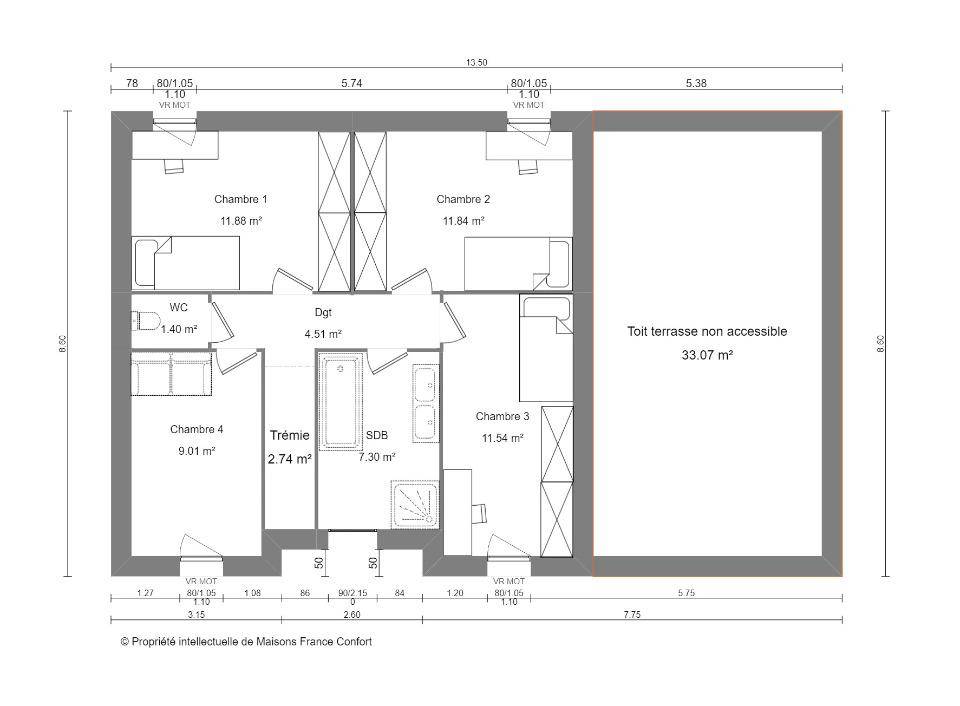 TERRAIN ET MAISONWaziers : maison neuve T4 de 92 m² sur 500 m² de terrainMAISON 4 PIÈCES DE PLAIN-PIED – PROCHE LILLEÀ moins de 25 km de la Belgique et à seulement quelques minutes de Lille, venez découvrir cette maison neuve de plain-pied située à Waziers (59119). Avec une surface de 92 m², elle propose un agencement fonctionnel et confortable.Elle se compose d’une pièce de vie lumineuse, d’une cuisine, de trois chambres et d’une salle de bains. Le tout est implanté sur un terrain de 500 m², idéal pour profiter d’un extérieur agréable.Le secteur offre un cadre de vie pratique et complet :Écoles de tous niveaux et crèche à moins de 10 minutes à pied,Neuf gares accessibles en moins de 10 minutes en voiture,Accès rapide aux autoroutes A21 et A1 (moins de 10 km),À proximité : bassin de natation, bibliothèque, tennis, commerces, deux supermarchés, boulangerie, supérette et bureau de poste.Cette maison est proposée au prix de 226 300 €.Pour plus d’informations ou pour organiser une visite, contactez notre agence :David CHAMBAULT – (Numéro supprimé)Maisons France Confort Lille vous accompagne dans la réalisation de votre projet immobilier.