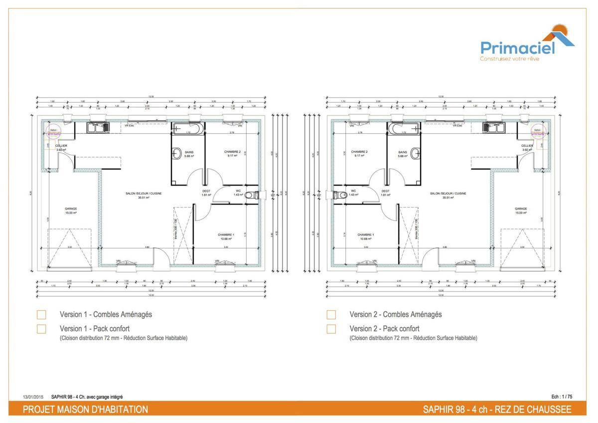 Nous vous proposons cette maison neuve, baptisée ""Saphir"", un modèle de notre gamme Primaciel conçu pour être accessible au plus grand nombre et idéal pour une première acquisition. De plain-pied, cette maison à prix maîtrisé bénéficie d'un aménagement optimisé avec son garage intégré, offrant un confort de vie inégalé sur une surface de 94 m².