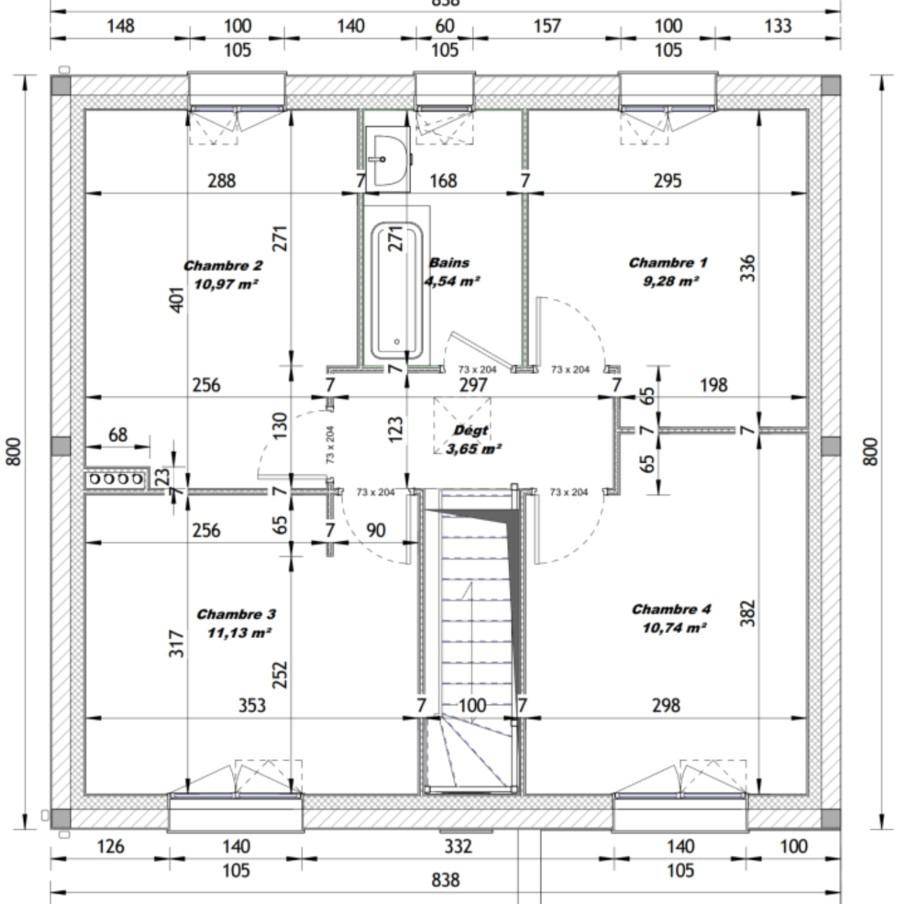 La maison est neuve prête à recevoir vos meubles, le chambres sont carrelées, les sanitaires (baignoire, meuble vasque, faïence, WC, le grillage... sont posés, les peintures sont faites, la taxe d'aménagement est payée