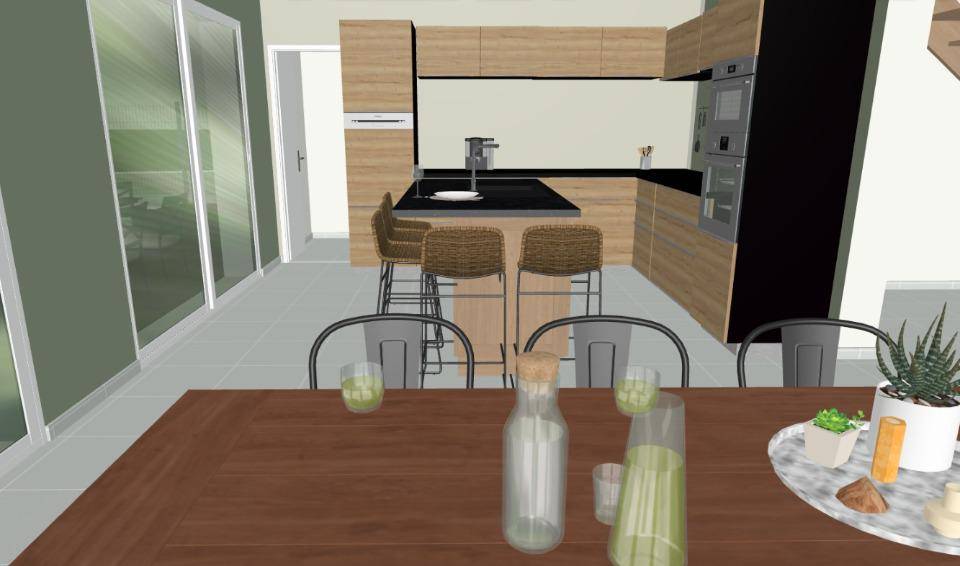 Cette maison se compose au rez de chaussée d'une grande pièce de vie lumineuse de 47m2 avec de grandes baies coulissantes, entrée avec vestiaire, un bureau, cellier attenant avec la cuisine et le garage
