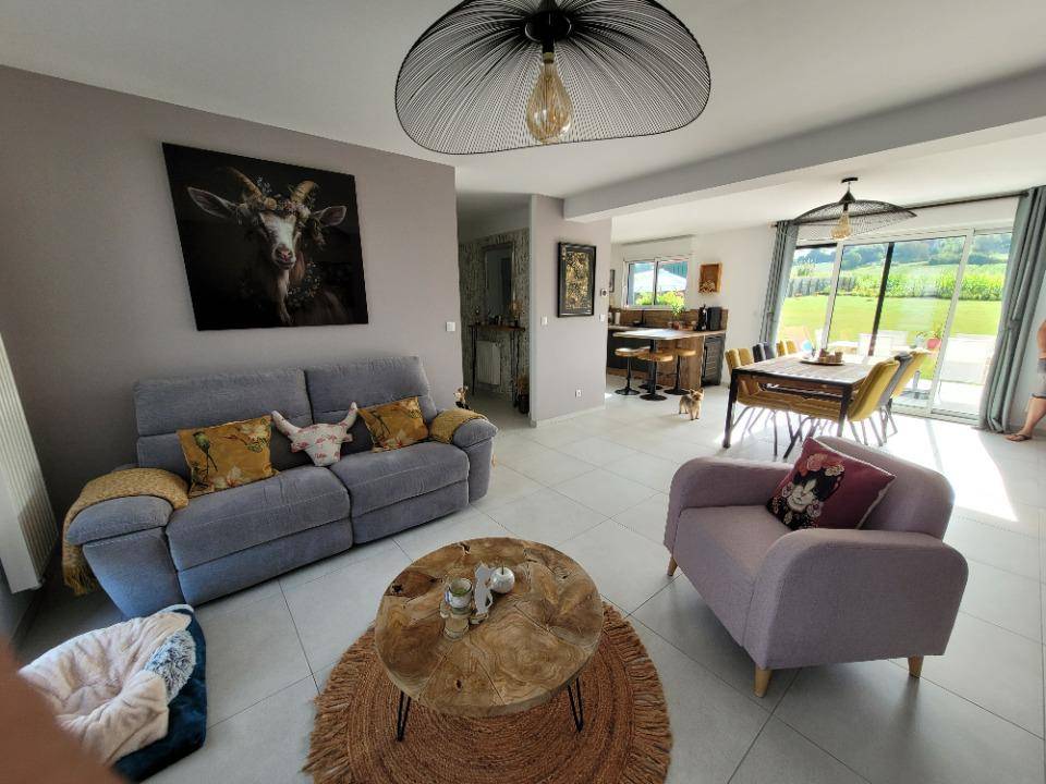 Au rez-de-chaussée, la pièce de vie est spacieuse et lumineuse.