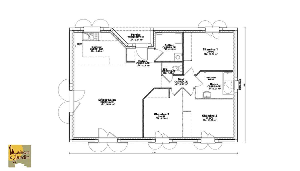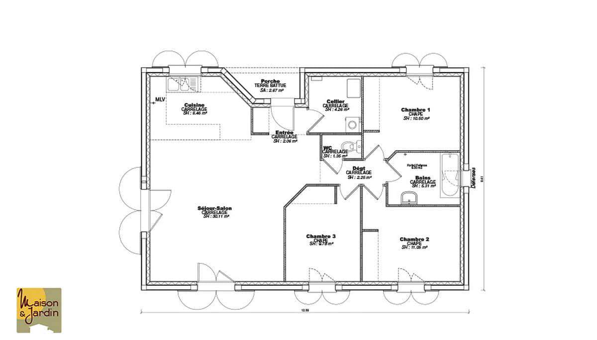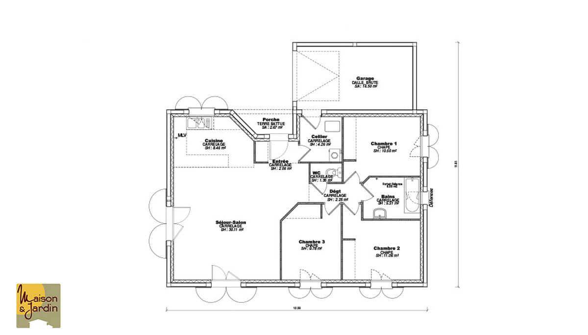 TERRAIN ET MAISONNous vous proposons cette maison neuve, baptisée Focus 75, une perle rare dans notre gamme MAISON ET JARDIN qui incarne le meilleur rapport qualité-prix. Conçue pour répondre aux attentes des plus exigeants, cette maison de 75 m² au look moderne et aux finitions soignées est l’incarnation même de l’efficacité et du confort. Avec ses 3 chambres et ses 4 pièces au total, elle est idéale pour accueillir une famille désireuse de s’épanouir dans un espace à la fois fonctionnel et accueillant.La Focus 75 se distingue par sa construction robuste en parpaings, gage de durabilité et de solidité. Son garage intégré de 15 m² offre non seulement un espace sécurisé pour votre véhicule mais aussi un espace de rangement supplémentaire, optimisant ainsi chaque mètre carré de la maison.L’une des caractéristiques les plus remarquables de cette maison est son engagement envers l’environnement et votre portefeuille. Conforme à la norme RE2020, la Focus 75 est une maison basse consommation qui vous permettra de réaliser d’importantes économies d’énergie tout en réduisant votre empreinte carbone. Cet aspect est d’autant plus important aujourd’hui, où la conscience écologique et la recherche d’efficacité énergétique sont au cœur des préoccupations des nouveaux propriétaires.Les options les plus plébiscitées par nos clients, telles que des solutions d’isolation avancées, des systèmes de chauffage performants et des équipements éco-énergétiques, sont disponibles pour personnaliser votre maison selon vos besoins et vos envies. La Focus 75 est donc une toile vierge prête à être adaptée à votre image, garantissant un confort de vie inégalé.En choisissant la Focus 75, vous optez pour une maison qui allie esthétique moderne, fonctionnalité et respect de l’environnement, le tout pour un excellent rapport qualité/prix. Ne manquez pas l’opportunité de construire la maison de vos rêves, une maison qui répond à vos exigences d’aujourd’hui et de demain. Contactez-nous pour plus d’informations