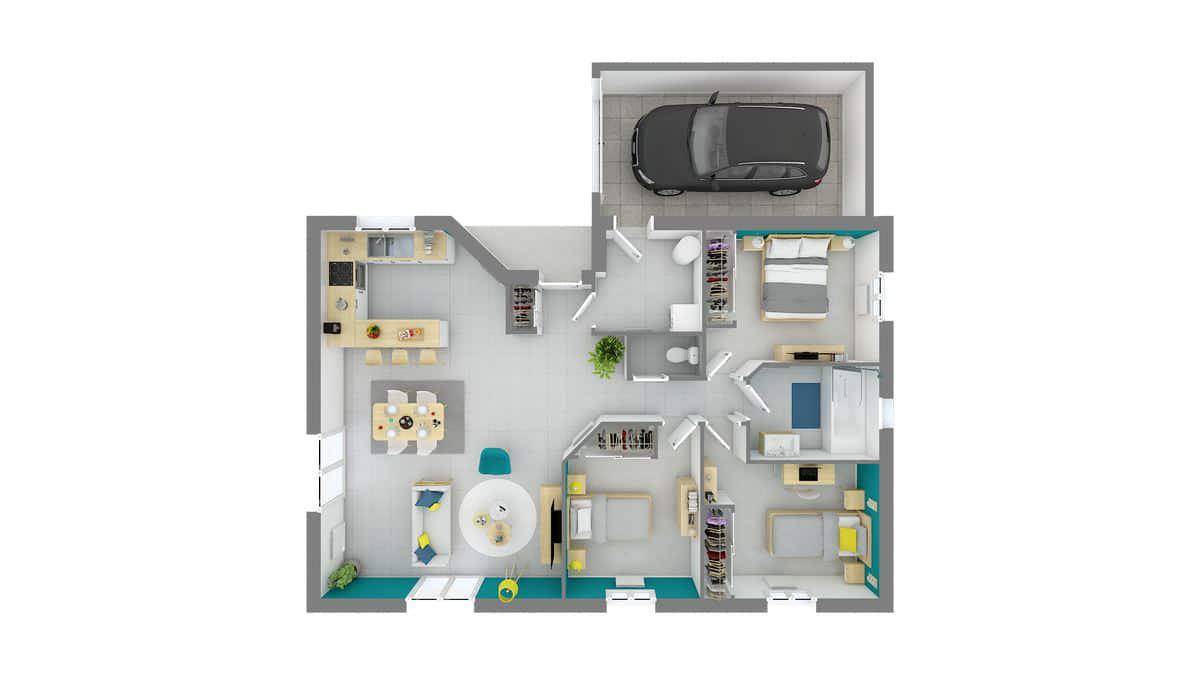 Cette maison se compose de 4 pièces lumineuses et bien agencées, incluant 3 chambres confortables, offrant ainsi un cadre de vie idéal pour les jeunes couples ou les petites familles à la recherche de leur nid douillet. La conception modulable de la Lucia permet une personnalisation selon les besoins et les envies de chacun, assurant que chaque maison soit aussi unique que ses habitants.