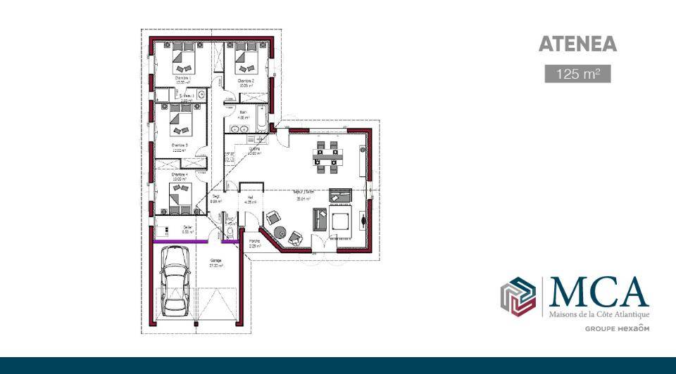 Cette maison familiale en L avec garage, dispose d'un hall d'entrée avec placard, un magnifique séjour lumineux donnant sur le jardin, et une cuisine ouverte pour un espace de vie de plus de 52m2. L'espace nuit est composé de 3 chambres avec placards, une salle de bains avec double vasques, et une suite parentale avec salle d'eau. Un double garage de 27m2 avec cellier communiquant viennent compléter ce bel ensemble.