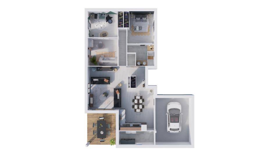 TERRAIN ET MAISONNatilia Pau vous propose un nouveau projet de construction d’une maison ossature bois moderne et performante, modèle Natilys 4 pans, l’un des best-sellers de notre gamme. Ce plain-pied de 103 m² habitables avec garage intégré de 16 m² est idéalement situé dans un lotissement calme et recherché à Poey-de-Lescar, à quelques minutes de Pau.Une maison moderne, lumineuse et économe en énergieCette maison neuve en ossature bois séduit par son plan en L qui apporte à la fois confort et originalité.- Espace de vie central : vaste séjour-salon-cuisine ouvert, très lumineux grâce à ses nombreuses ouvertures donnant sur le jardin.- À gauche : garage intégré de 16 m², pratique pour stationner votre véhicule et ranger vos affaires.- À droite : espace nuit avec 3 ou 4 chambres selon vos besoins, et une salle de bains familiale.Performance énergétique et confortGrâce à la technologie Natilia, cette maison ossature bois bénéficie :- D’une excellente isolation thermique et phonique- D’une consommation énergétique réduite- D’un confort optimal en toutes saisons- D’un chantier plus rapide que la construction traditionnelleUn emplacement privilégié à Poey-de-LescarCe projet est implanté dans un environnement agréable, proche de toutes commodités :- Écoles et collège à proximité- Commerces et services accessibles rapidement- Accès facile aux grands axes pour rejoindre Pau et ses alentoursPourquoi choisir une maison Natilia ?- Design moderne avec toiture 4 pans- Construction durable et respectueuse de l’environnement- Plan optimisé pour la vie de famille- Accompagnement personnalisé tout au long de votre projet➡ Contactez dès maintenant Natilia Pau pour plus d’informations sur ce projet ou pour personnaliser votre future maison ossature bois à Poey-de-Lescar.