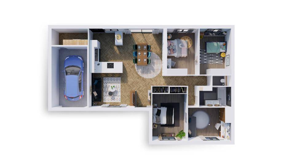 TERRAIN ET MAISONNatilia Pau vous propose un nouveau projet de construction d’une maison ossature bois moderne et performante, modèle Natilys 4 pans, l’un des best-sellers de notre gamme. Ce plain-pied de 103 m² habitables avec garage intégré de 16 m² est idéalement situé dans un lotissement calme et recherché à Poey-de-Lescar, à quelques minutes de Pau.Une maison moderne, lumineuse et économe en énergieCette maison neuve en ossature bois séduit par son plan en L qui apporte à la fois confort et originalité.- Espace de vie central : vaste séjour-salon-cuisine ouvert, très lumineux grâce à ses nombreuses ouvertures donnant sur le jardin.- À gauche : garage intégré de 16 m², pratique pour stationner votre véhicule et ranger vos affaires.- À droite : espace nuit avec 3 ou 4 chambres selon vos besoins, et une salle de bains familiale.Performance énergétique et confortGrâce à la technologie Natilia, cette maison ossature bois bénéficie :- D’une excellente isolation thermique et phonique- D’une consommation énergétique réduite- D’un confort optimal en toutes saisons- D’un chantier plus rapide que la construction traditionnelleUn emplacement privilégié à Poey-de-LescarCe projet est implanté dans un environnement agréable, proche de toutes commodités :- Écoles et collège à proximité- Commerces et services accessibles rapidement- Accès facile aux grands axes pour rejoindre Pau et ses alentoursPourquoi choisir une maison Natilia ?- Design moderne avec toiture 4 pans- Construction durable et respectueuse de l’environnement- Plan optimisé pour la vie de famille- Accompagnement personnalisé tout au long de votre projet➡ Contactez dès maintenant Natilia Pau pour plus d’informations sur ce projet ou pour personnaliser votre future maison ossature bois à Poey-de-Lescar.