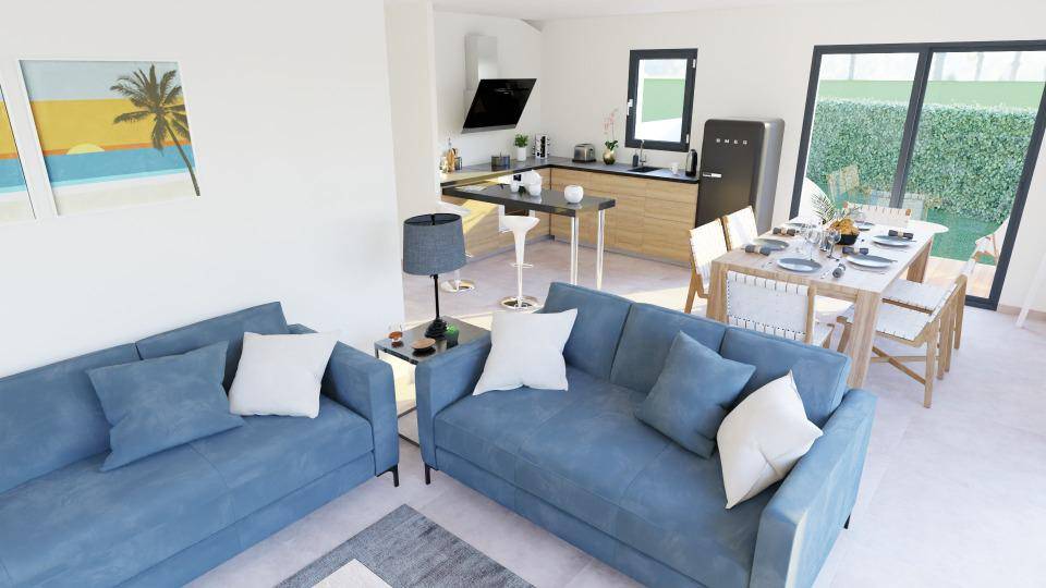 TERRAIN ET MAISONL’ECLAIRCIE est une belle maison contemporaine qui saura vous séduire par son habitat lumineux grâce à ses grandes ouvertures. De par ses volumes intéressants, ce plain-pied de 85 m² composé d’une grande pièce de vie ouvert sur une cuisine attenante au garage, et d’un coin nuit avec trois chambres et d’une grande salle de bain permet à tous les membres de la famille de disposer de l’espace nécessaire à votre confort. N’attendez plus et contactez nous pour construire votre projet de vie dans le Tarn, l’Aude, L’Hérault, la Haute-Garonne ainsi que les Pyrénées Orientales.
