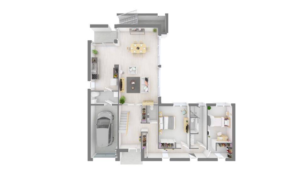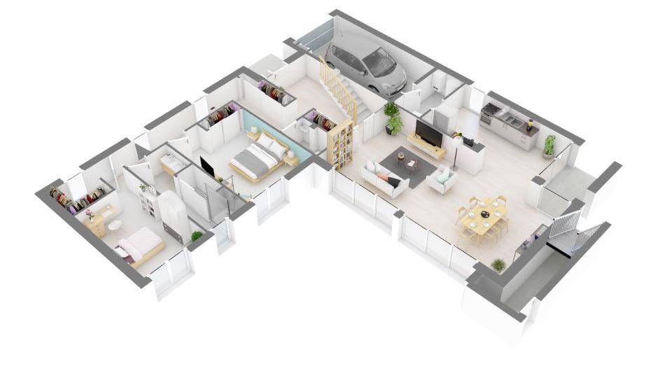 TERRAIN ET MAISONDécouvrez le modèle Rosée 86 m², une élégante maison de plain-pied conçue dans le respect de l’architecture de notre région. La villa se compose d’un spacieux Salon/Séjour dotée d’une grande baie vitrée. La cuisine ouverte avec un accès direct dans le garage. Le coté nuit s’articule autour de 3 chambres avec placard, un WC indépendant et une belle salle de bains. Cette maison, vous assurera des espaces de vie jour et nuit bien séparés. Elle est à construire dans le département du Tarn, l’Aude, l’Hérault, la Haute-Garonne ainsi que les Pyrénées Orientales par Oc Résidences, votre constructeur sur mesure en Occitanie.