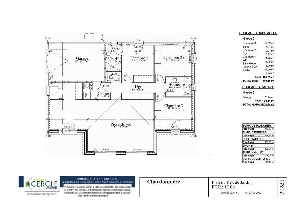 TERRAIN ET MAISONNous vous proposons cette maison neuve, baptisée « »Chardonnière » », un modèle de plain-pied qui allie élégance et fonctionnalité, conçu pour répondre aux attentes des familles modernes. Avec une surface habitable de 106 m², cette demeure se distingue par son plan en T, offrant une organisation de l’espace optimale et une intégration harmonieuse dans son environnement.La « »Chardonnière » » comprend 4 chambres spacieuses, permettant à chaque membre de la famille de bénéficier de son propre espace de tranquillité. Les pièces sont réparties de manière à favoriser l’intimité tout en conservant une belle convivialité dans les espaces de vie communs. Le salon et la salle à manger, d’une superficie généreuse de près de 50 m², forment un espace ouvert lumineux, idéal pour les moments de partage et de détente.Cette maison est également équipée de deux salles de bains, dont une attenante à la suite parentale, offrant confort et praticité au quotidien. Le garage intégré, accessible depuis l’une des entrées de la maison, est un atout majeur pour les terrains à accès restreint, tout en préservant l’intimité des pièces de vie.Construite selon la norme RE2020, la « »Chardonnière » » est une maison basse consommation qui illustre notre engagement envers l’environnement et le bien-être de ses occupants. Grâce à une isolation performante et une conception orientée vers le confort d’été, elle garantit une consommation énergétique minimale et un confort maximal, quelle que soit la saison.Les options les plus plébiscitées, telles que les menuiseries en aluminium et la domotique, sont disponibles pour personnaliser votre maison selon vos envies et besoins. Ces technologies modernes ne sont pas seulement un gage de qualité et de durabilité, mais elles offrent également une expérience de vie connectée et simplifiée.En choisissant « »Chardonnière » », vous optez pour une maison qui allie esthétique, confort et respect de l’environnement. Une demeure où chaque détail a été pensé pour répondr
