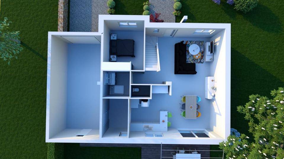 Conçue de plain-pied, elle comporte quatre chambres, une cuisine et deux salles de bains. Cette maison est neuve.