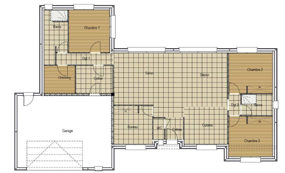 À vendre : à deux pas du Mans, Maine Construction Le Mans vous propose cette maison de 6 pièces de plain-pied de 128 m², idéalement située dans Courceboeufs (72290).