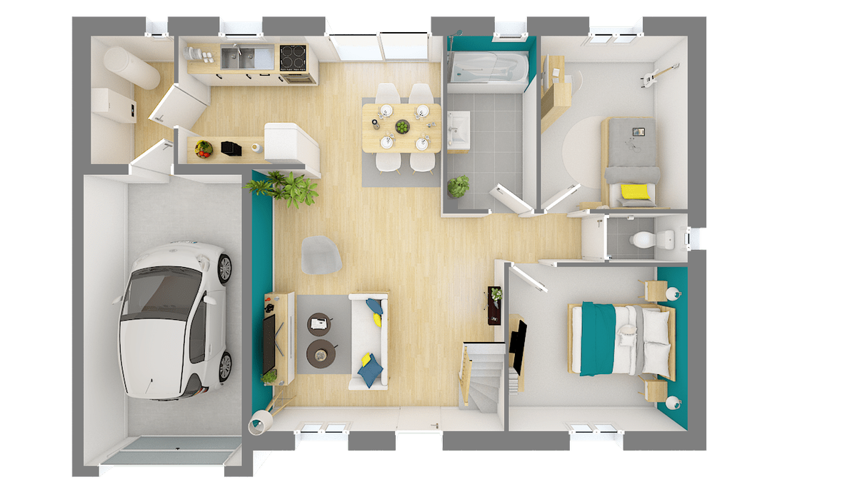 L'un des atouts majeurs de cette maison est sans doute ses combles aménageables, qui offrent la possibilité d'agrandir l'espace habitable selon vos besoins et vos envies, ajoutant ainsi une valeur considérable à votre investissement. De plus, la Rubis intègre un garage, solution pratique pour sécuriser votre véhicule et stocker vos équipements.