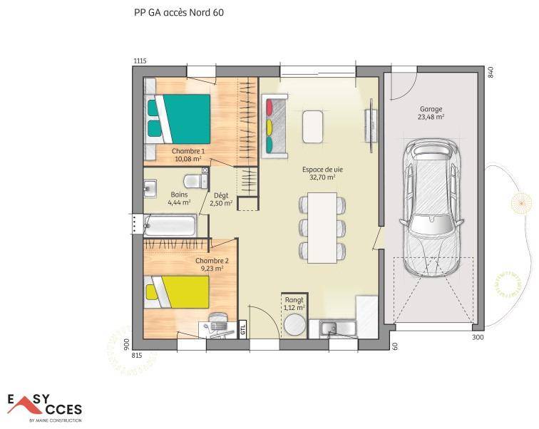 TERRAIN ET MAISONMaison de 5 pièces (77 m²) en vente à AignéIDÉALEMENT SITUÉE – MAISON 5 PIÈCES NEUVEÀ 11 km du Mans, notre agence Maine Construction Le Mans est ravie de vous présenter cette maison de 5 pièces de plain-pied de 77 m² et de 780 m² de terrain idéalement située dans Aigné (72650).Conçue de plain-pied, elle compte trois chambres, une cuisine et une salle de bains. La maison est neuve.Cette propriété se trouve dans un quartier convoité. L’École Primaire Publique Roger Bazille est implantée à moins de 10 minutes à pied. Niveau transports en commun, il y a quatre gares à moins de 10 minutes en voiture. Il y a un accès à l’autoroute A11 à 4 km. On trouve un tennis à proximité du logement.Elle est à vendre pour la somme de 215 000 €.N’hésitez pas à prendre contact avec notre constructeur (HOUDAYER François : (Numéro supprimé)) pour tout renseignement sur la maison ou sur les démarches à suivre.