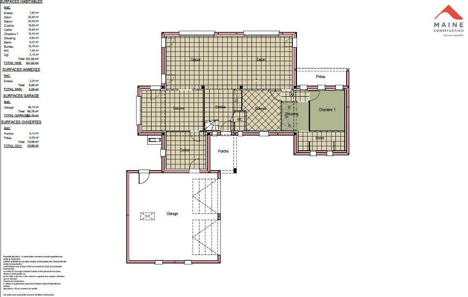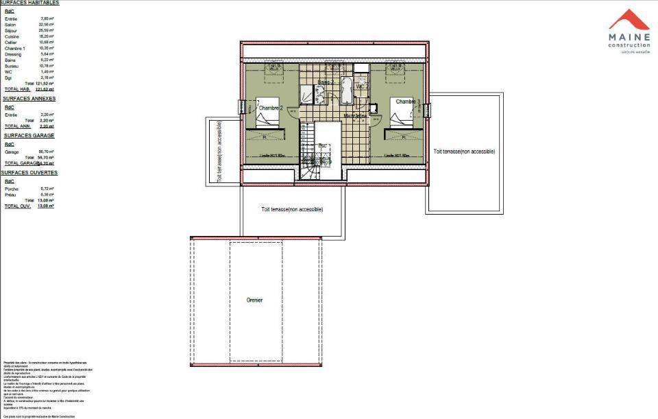En vente : localisée à 13 km du Mans, votre agence Maine Construction Le Mans est heureuse de vous présenter cette maison de 5 pièces de 171 m² dans Laigné-en-Belin (72220), proche de la gare.
