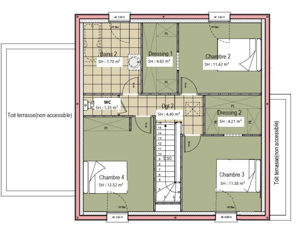 Il s'agit d'une maison de 2 niveaux. Elle est neuve.