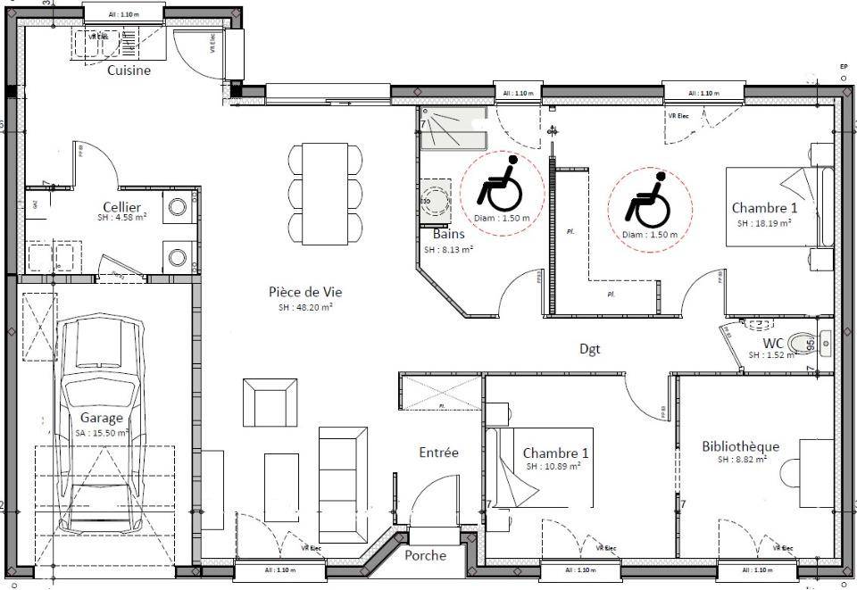 Conçue de plain-pied, elle compte trois chambres, une cuisine et une salle de bains. La maison est neuve.