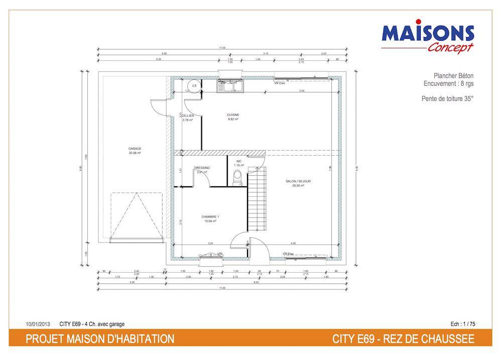 La maison ""City"" est avant tout conçue dans le respect des dernières normes énergétiques, garantissant une faible consommation énergétique et un confort optimal en toutes saisons. Ce modèle représente donc un investissement durable pour votre avenir, alliant économie d'énergie, respect de l'environnement et qualité de vie.