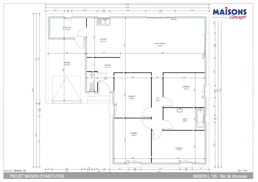 Nous vous proposons cette maison neuve, baptisée ""Élégance"", un modèle qui se distingue par sa forme architecturale en L, offrant à la fois style et fonctionnalité sur une surface habitable de 103 m². Conçue pour répondre aux attentes des plus exigeants, cette maison de plain-pied combine harmonieusement espace et confort, avec un total de 4 pièces, dont 4 chambres spacieuses, promettant ainsi un cadre de vie idéal pour toute la famille.