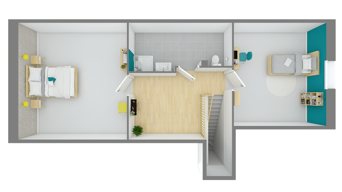 La Rubis se distingue par son excellent rapport qualité/prix, offrant non seulement 4 chambres spacieuses mais aussi un total de 4 pièces bien agencées, garantissant ainsi un espace de vie optimal pour chaque membre de la famille. La pièce de vie, véritable cœur de la maison, s'étend sur plus de 40 m², offrant un espace ouvert et lumineux, idéal pour partager des moments précieux en famille ou entre amis.