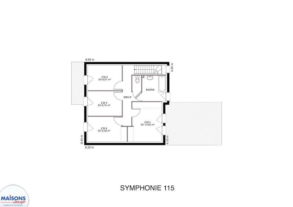 Nous vous proposons cette maison neuve, baptisée ""Symphonie"", une création architecturale qui se distingue par son harmonie et son équilibre, offrant un cadre de vie idéal pour ceux en quête d'innovation et de confort. Avec une surface habitable de 115 m² répartie sur deux niveaux (R+1), cette demeure est conçue pour maximiser l'espace et la lumière, tout en garantissant une basse consommation énergétique conforme à la norme RE2020.