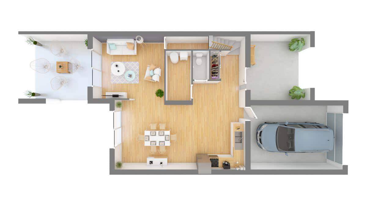 ""Symphonie"" se compose de 4 chambres spacieuses et de 4 pièces soigneusement agencées, promettant ainsi un confort optimal pour toute la famille. Le garage accolé, pratique et esthétique avec son enduit bicolore, ajoute une note d'élégance à l'ensemble, tout en offrant un espace supplémentaire très apprécié.