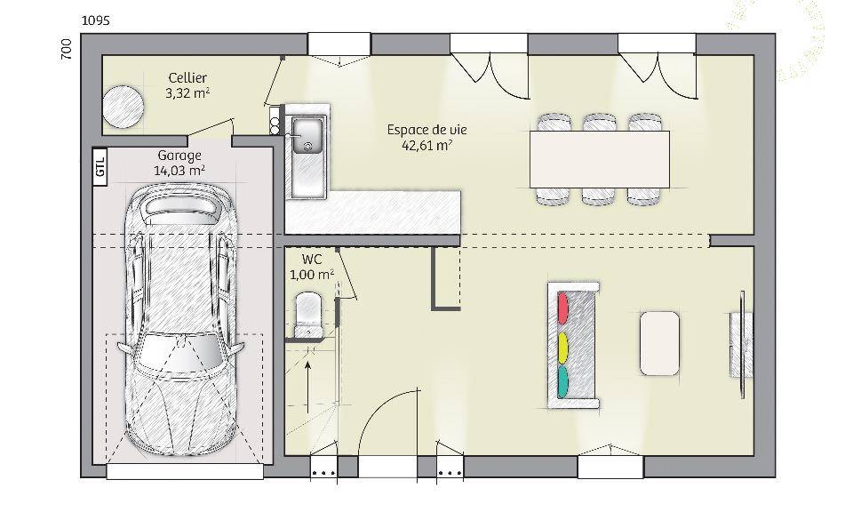 TERRAIN ET MAISONBeau terrain a voir école et commerces a proximité . Idéal premier achat, cette maison de plain-pied fonctionnelle et lumineuse vous propose une vaste pièce de vie éclairée par sa grande baie vitrée avec cuisine ouverte, deux chambres avec rangement, salle de bains et cellier indépendant. Pour vous assurer un confort de vie et conformément à la RE2025, nous avons choisi un mode de chauffage par PAC + plancher chauffant, volets roulants électriques. Prix hors fourniture et pose : des appareils sanitaires (sauf système de chauffage et d'eau chaude sanitaire), du carrelage et de la faïence, des revêtements de sol dans les chambres. Hors décoration et aménagement intérieur et peinture. Hors raccordements, frais de notaire et dommage ouvrage. // Réf. : 1954-213550-CHL. Prix terrain : 78 000 €, hors frais d'agence à la charge de l'acquéreur. Ce terrain vous est proposé, par nos partenaires fonciers, dans le cadre d'un projet de construction avec nous. Les informations sur les risques auxquels ce bien est exposé sont disponibles sur le site Géorisques (www.georisques.gouv.fr). Prix maison : 106 019 €.