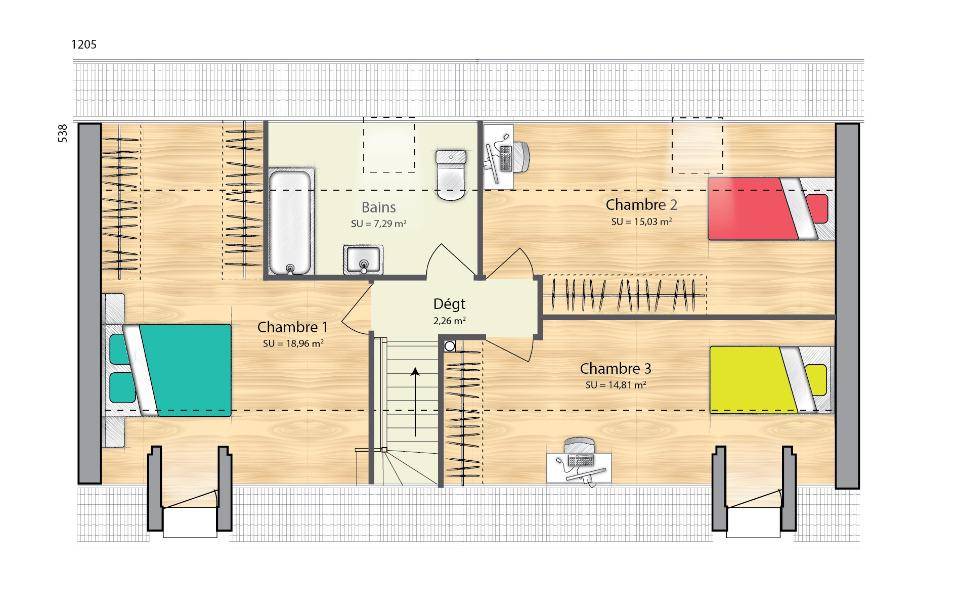 Cette maison comporte 2 niveaux. Elle est neuve.