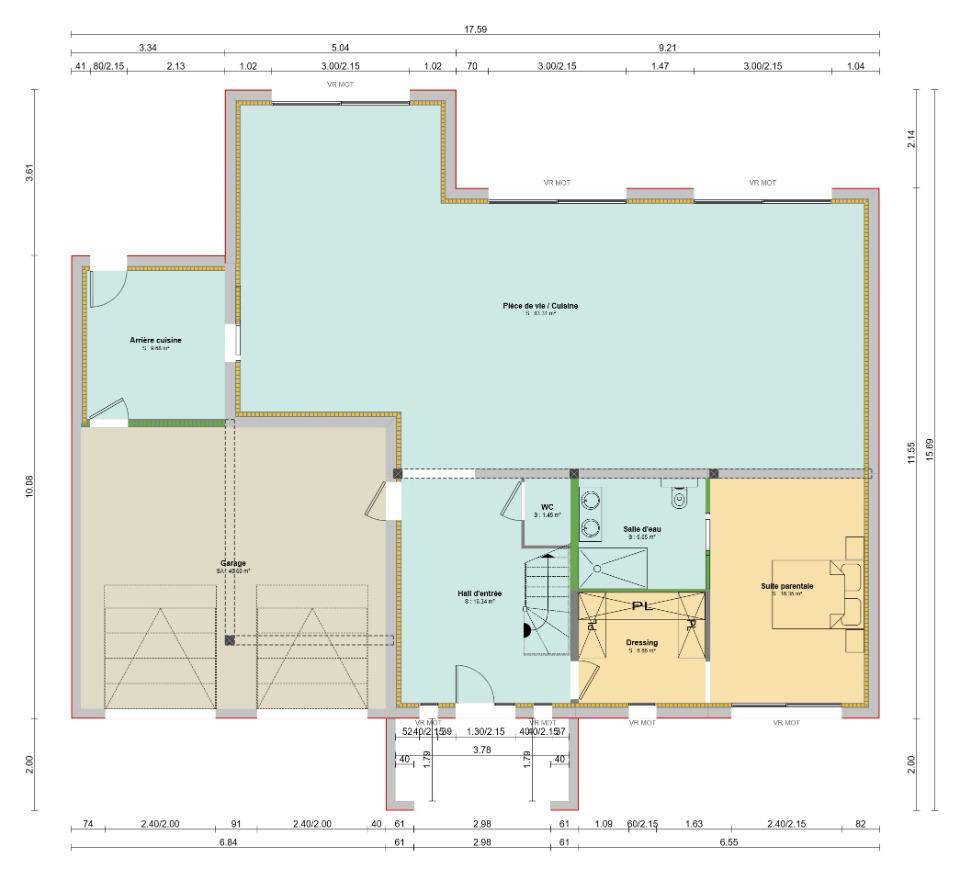 ✔ Séjour lumineux avec grandes baies vitrées et cuisine ouverte