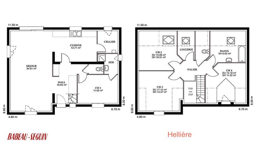 Sur ce terrain, nous vous proposons cette maison neuve, la Hellière, conçue par Babeau-Seguin, constructeur reconnu pour offrir le meilleur rapport qualité/prix du marché.