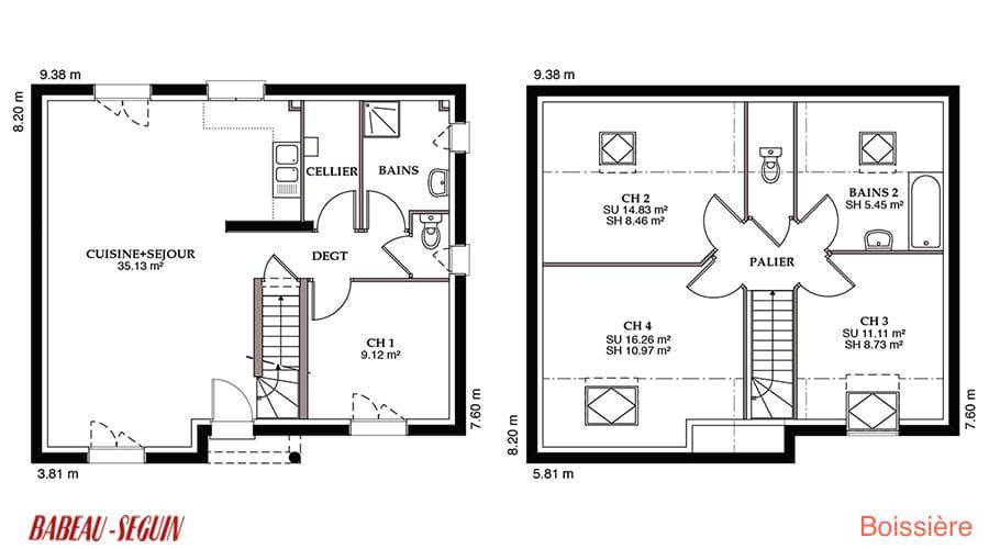Sur ce terrain, nous vous proposons cette maison neuve, la Boissière, construite par Babeau-Seguin, le constructeur offrant le meilleur rapport qualité/prix du marché. Cette élégante maison à étage d’une surface de 95 m² est idéale pour toutes les familles en quête de confort.