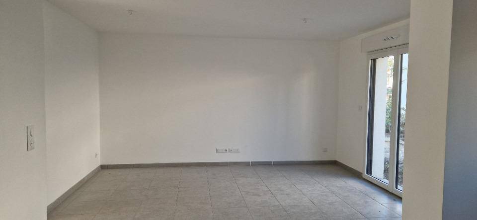 Terrasse en béton 3.00 m x 3.00 m, jardin clos et engazonné. Stationnement aérien privatif.