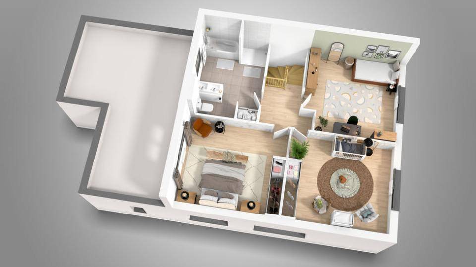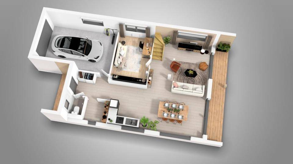 Son style de toit terrasse résolument contemporain est en pente 7%. Des surfaces pensées pour le confort avec une terrasse et un porche.
