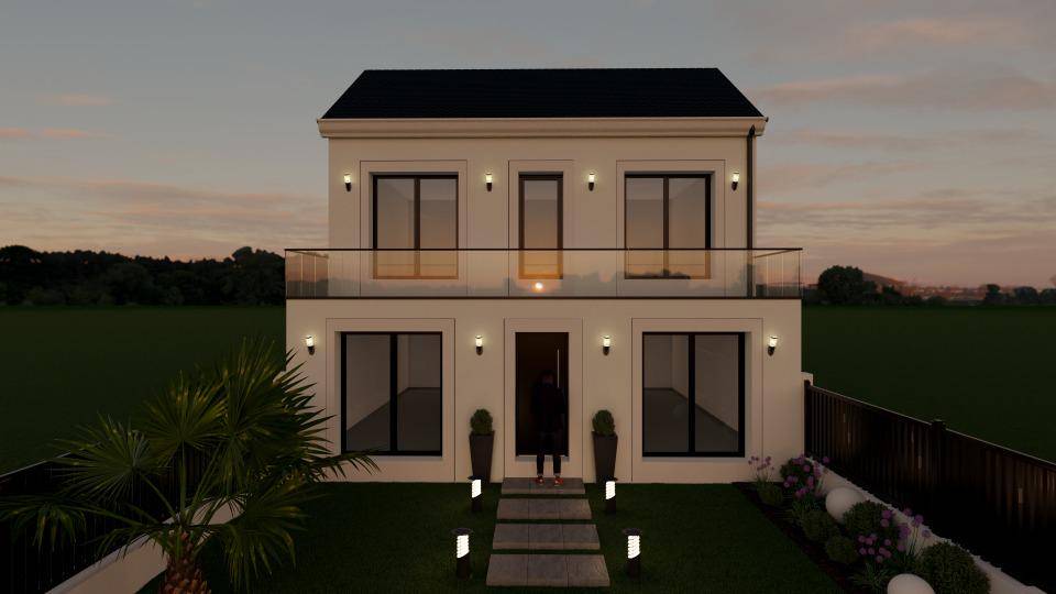 Il s'agit d'une maison de 2 niveaux. Elle propose quatre chambres, une cuisine et deux salles de bains. Cette maison est neuve.
