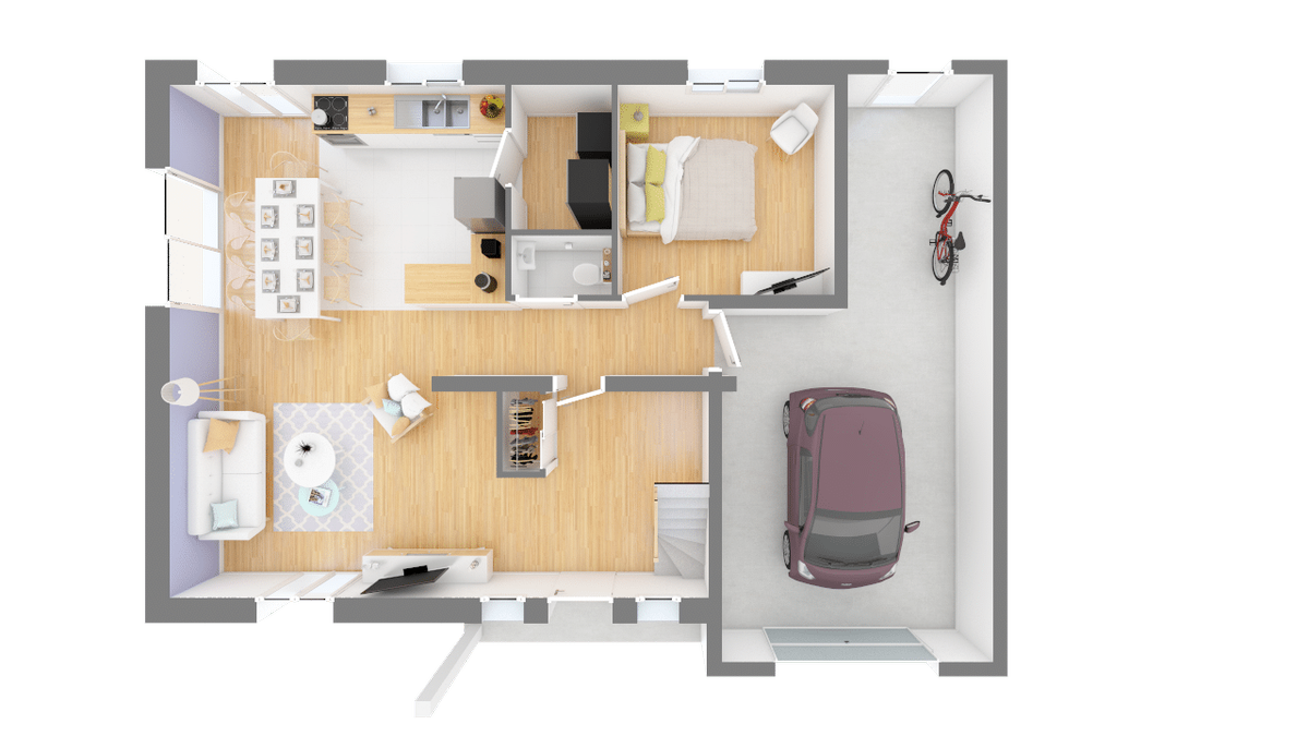 Avec une surface de 96 m², cette maison familiale par excellence dispose de 3 chambres et de 4 pièces, offrant un parfait compromis entre espace disponible et design. La Liverdière se distingue par sa charpente traditionnelle et sa dalle béton à l'étage, permettant un aménagement des combles optimal.
