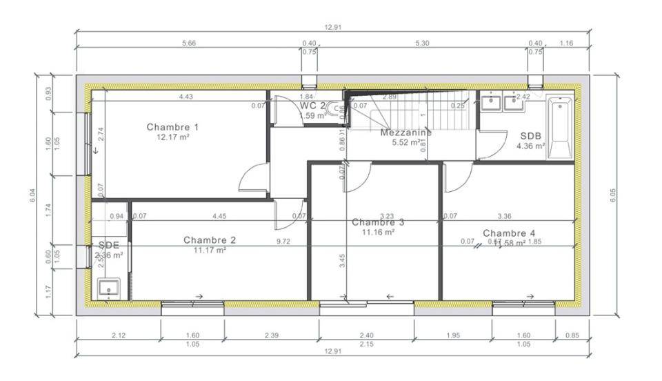 Projet de construction d'une surface habitable de 122m2, disposant de 4 chambres dont une suite parentale.