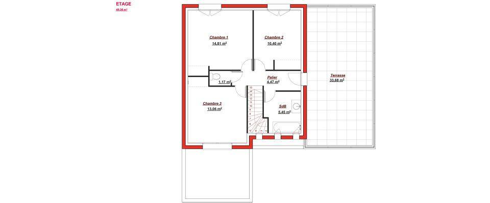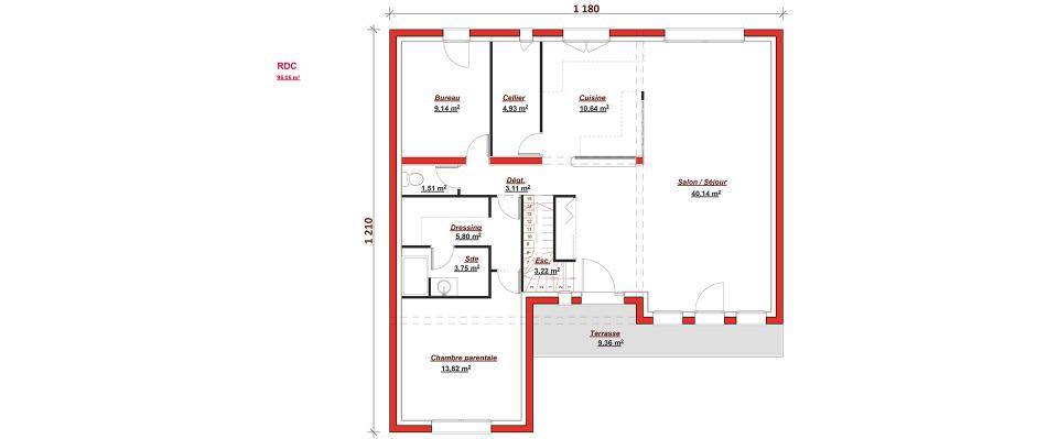 Projet de construction d'une surface habitable de 145m2, disposant de 5 chambres dont une suite parentale au rdc.